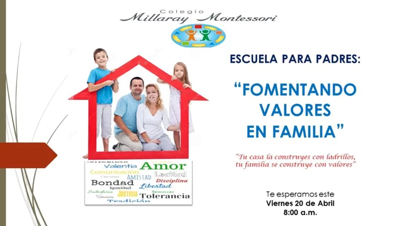 This Friday, April 20, the theme "Promoting family values" will be taught as part of the activities of the School for Parents. The meeting will be at 8:00 p.m. at the Millaray College.